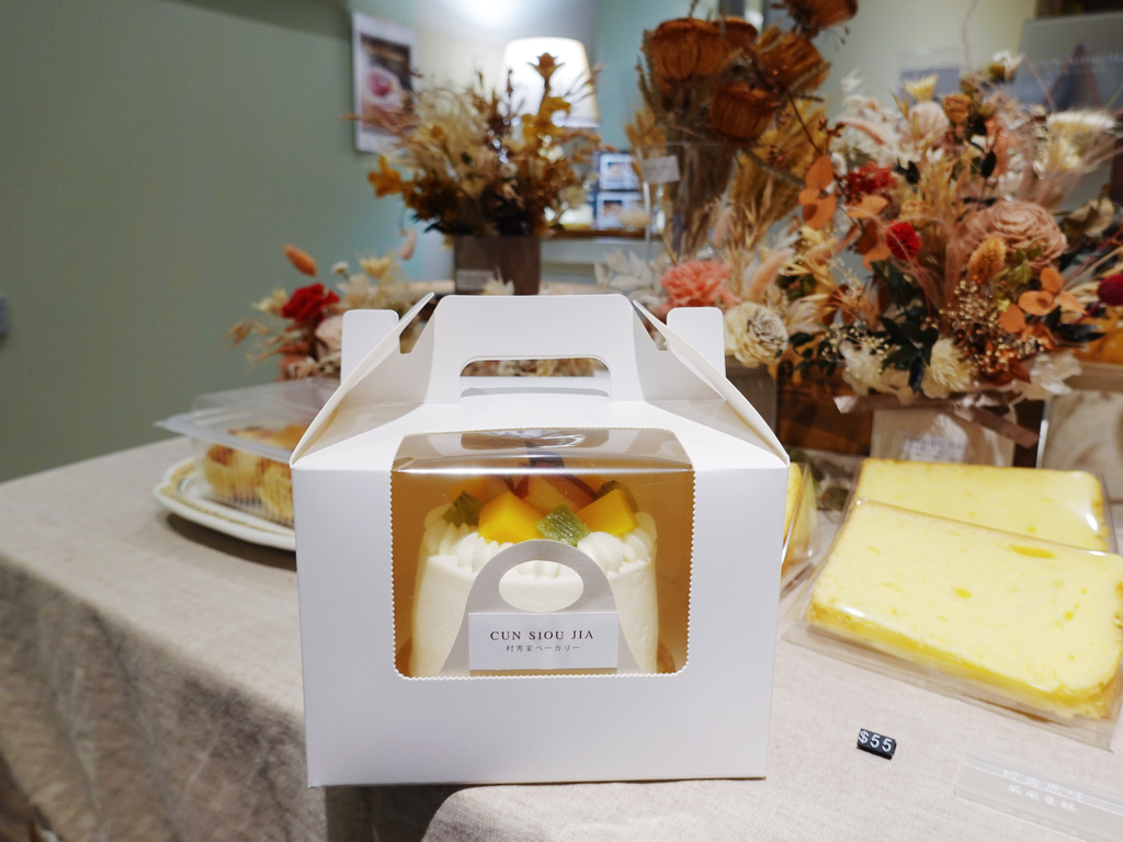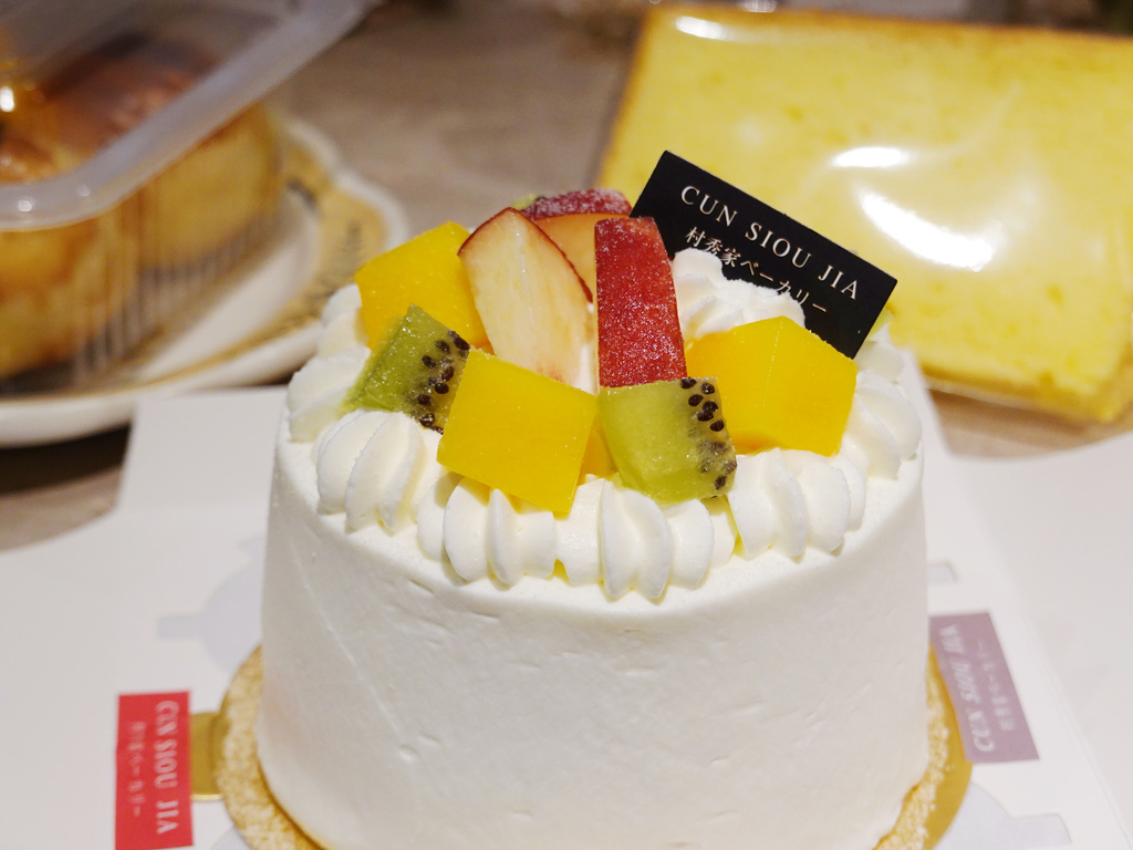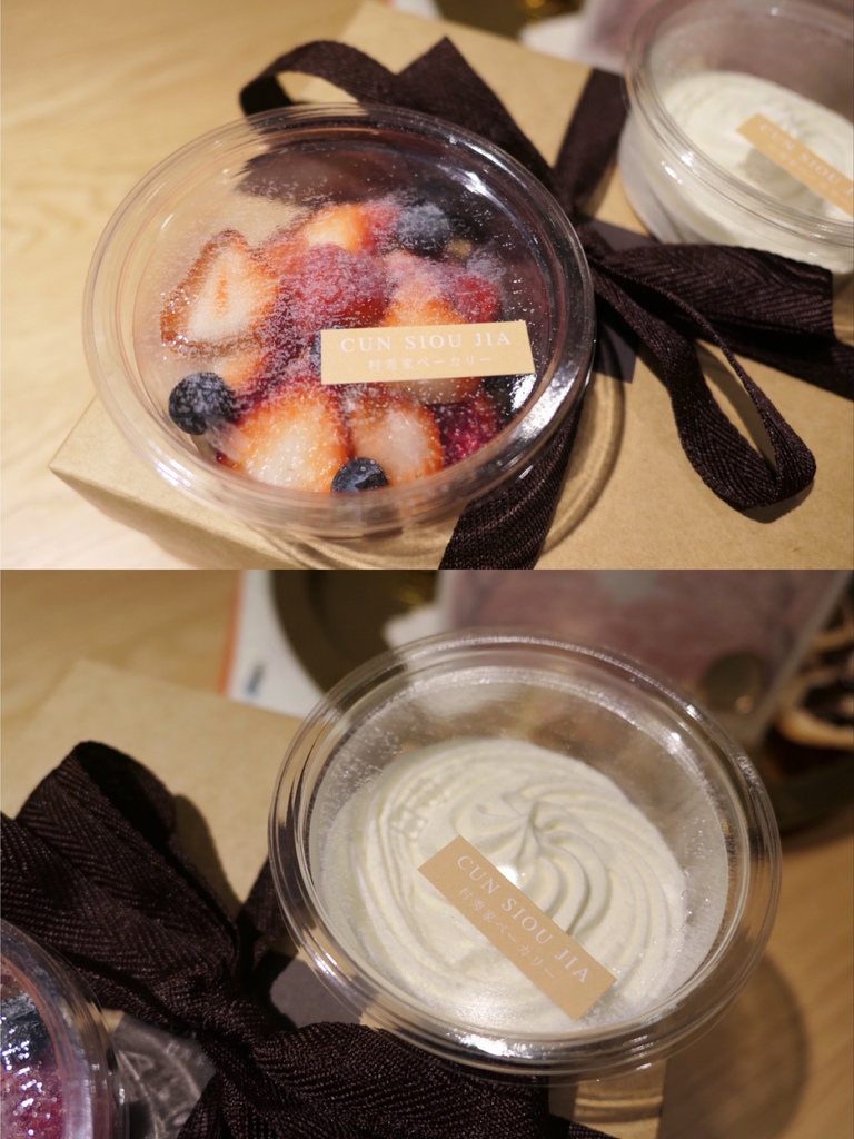 「Cun Siou Jia 村秀家 ベーカリー」的戚風蛋糕體蓬鬆濕潤不乾口,搭上恰恰好的輕盈鮮奶油更添清爽,而水果酸度更達到加分作用。