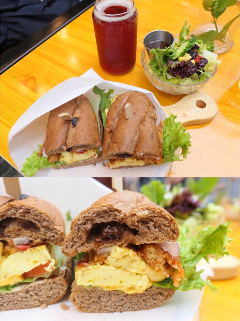 帶點甜味富有口感的核桃麵包夾著生菜、蛋及起司,即使不是大份量,但飽足感也是不容小覷。