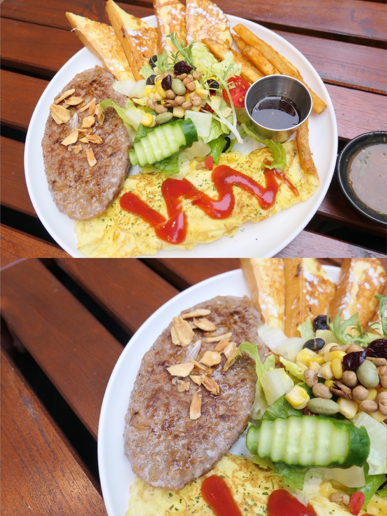 大份量套餐主要是肉品搭上豐富配餐,相較起精緻套餐,多了法式吐司。