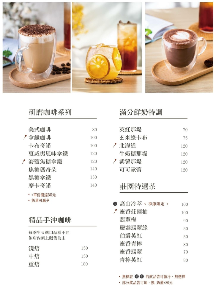▲拿鐵咖啡 $100(更換飲品折抵$30)