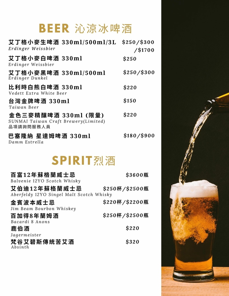 ▲艾丁格小麥生啤酒500ml(主廚精選雙人套餐 $1280+10%)