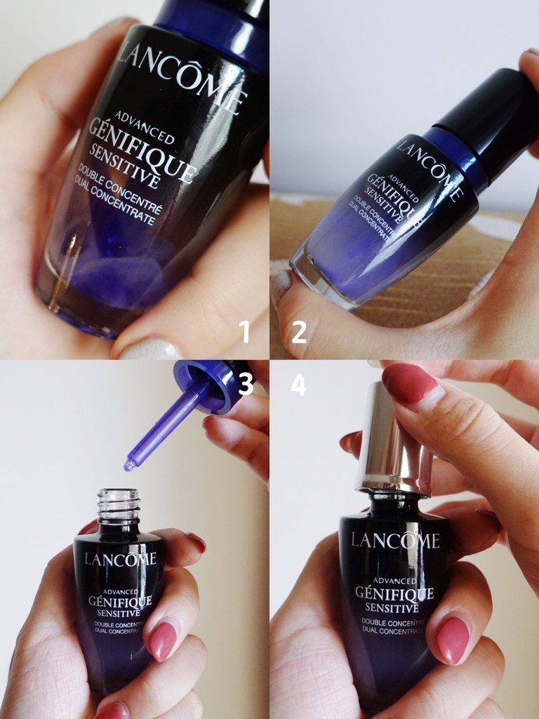 我通常都是早晚在化妝水後使用小黑瓶,全臉大概是1-2管的用量。自動汲取滴管的設計我覺得十分貼心,好控制又不會沾取細菌,能常保瓶口乾淨清潔。