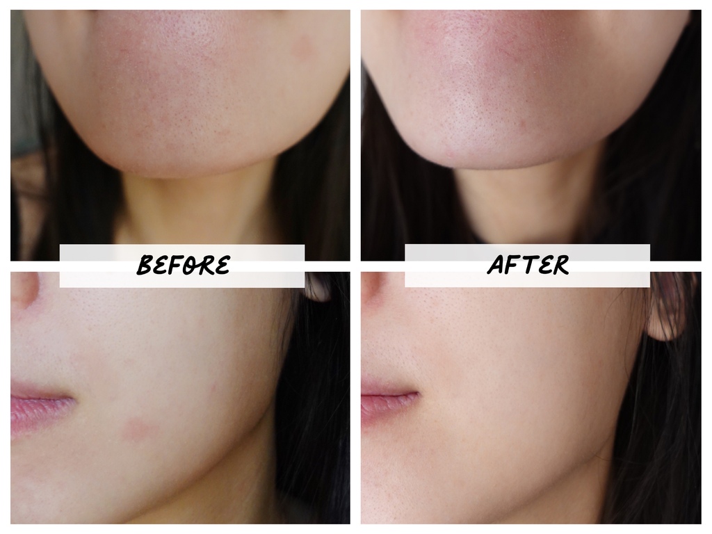 第一天莫名在臉頰長的小紅點,在使用安瓶兩天後就已經消失於無形;下巴春風吹又生的粉刺林,顆粒感也有非常顯著的改善。