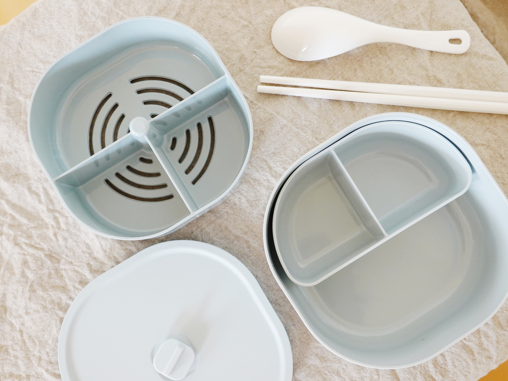 不鏽鋼便當盒只能電鍋加熱,無法使用微波爐、外型千篇一律;玻璃便當盒則是重量偏重,摔到還會有破裂的危險;而塑膠便當盒密封條總是很容易藏污納垢,在清潔上需要比較費心。