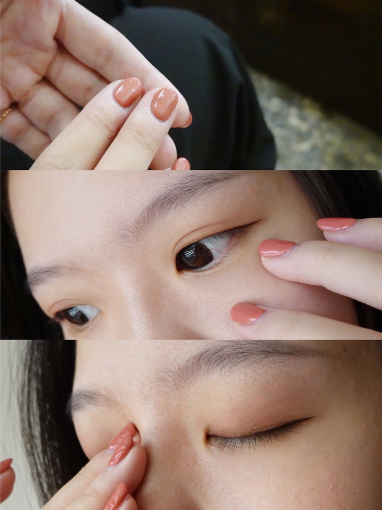 2. 由內而外輕壓下眼周,再由內而外輕壓上眼窩,最後再帶至太陽穴