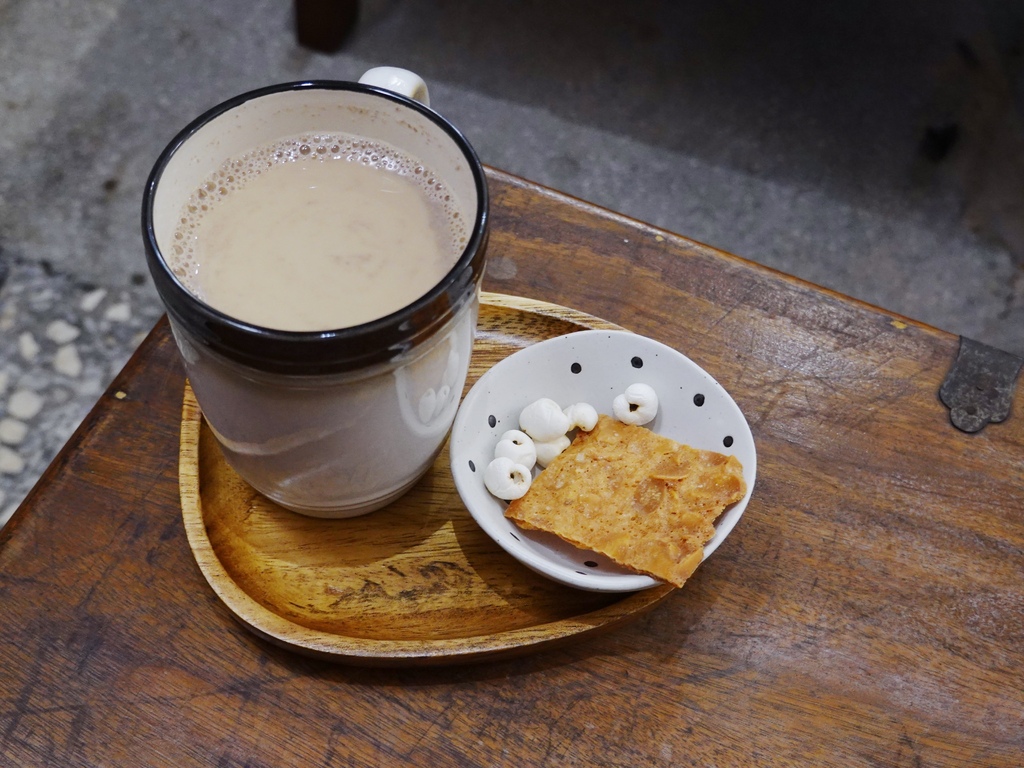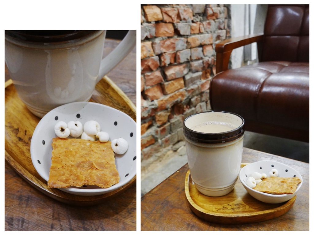 鍋煮奶茶帶有約一分糖的甜度,相較於熱水泡的紅茶加上牛奶更為醇厚些,但「餘生漫漫|輕食空間」則屬清爽型,搭上一旁的杏仁米片和爆米花,就可當作一個小小下午茶品嘗。