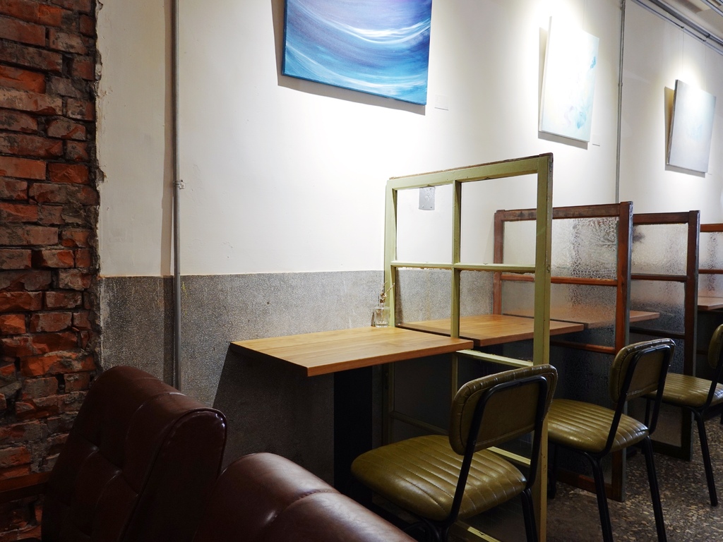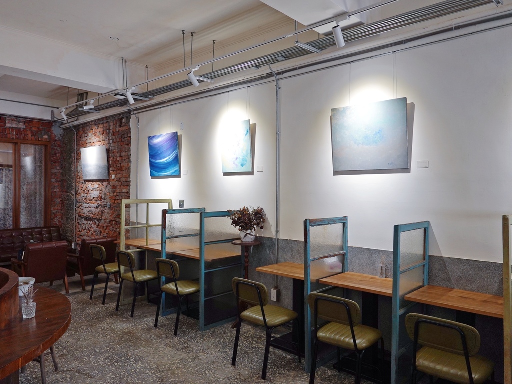 目前一樓的咖啡廳有和畫家聯合策展,牆面上大大小小的畫作不僅豐富了白牆及紅磚牆上的色彩,也讓更多年輕、尚未完全發光發熱的創作者的作品得以被看見。