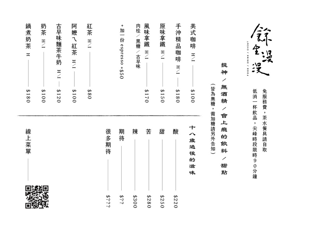 「餘生漫漫|輕食空間」不時也有提供預約制的深夜限定菜單,除了販售原菜單沒有列出的餐點品項外,還有提供酒精飲品,享受以酒會友的歡快。