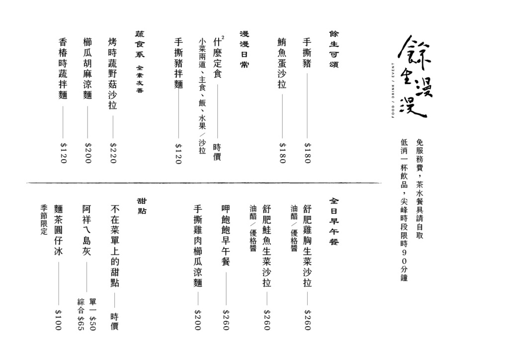而「餘生漫漫|輕食空間」這店名,符合這一種文青、有被歲月淬練過的痕跡。