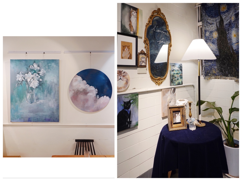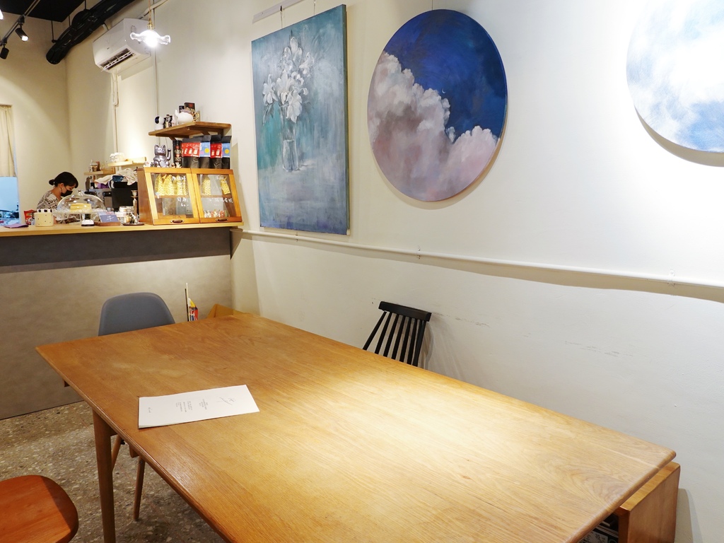 「暇俵咖啡/ Cafe.chiabiao」也是個藝文空間,牆面上裝飾著不少畫作,店內則不時會開設繪畫課程。