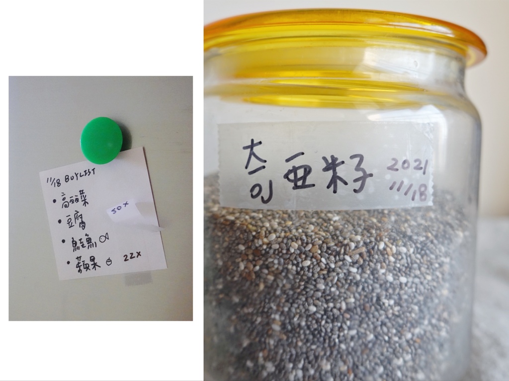 我最常將3M Scotch隱形膠帶用在冰箱的物品存放,以及我會把常備品食物清單貼在冰箱上,並用隱形膠帶作為註記,將使用完的時間記錄下來,每次採買就不用重複書寫。