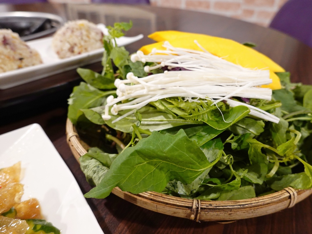 滿滿的季節有機野菜份量很澎湃,當天有野莧、龍葵、紅鳳菜、角菜、水芹菜及櫻花赤草這幾種,許多都是平常不常吃到的食材。