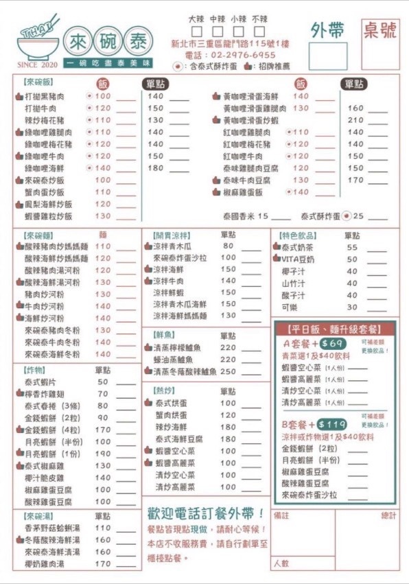 「來碗泰泰式料理」以親民價格卻有著餐廳水準為主打,原料從泰國當地進口,醬料也是自行製作,企圖成為CP值最高的三重泰式料理。