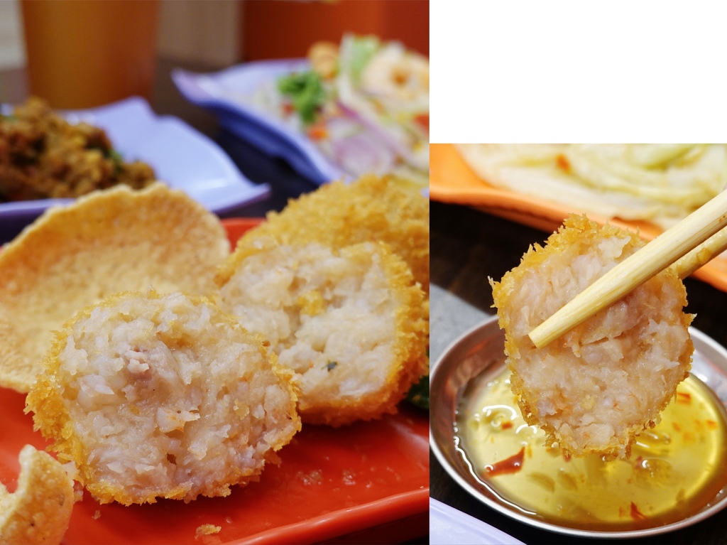 月亮蝦餅可以算是我最愛的泰式料理,而金錢蝦餅則是以百分之百純蝦漿捏成球狀,蝦肉的彈滑口感會更為鮮明。