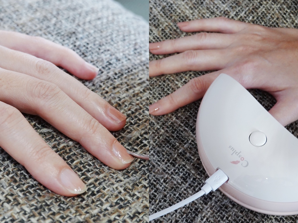接下來只要照一次光撩燈(30秒)就可以了,這時候底膠沒有乾是正常的,不用擔心。