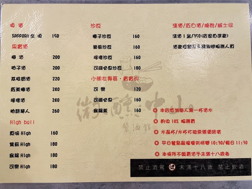 ※備註:低消為每人一杯酒水 / 酌收10%服務費