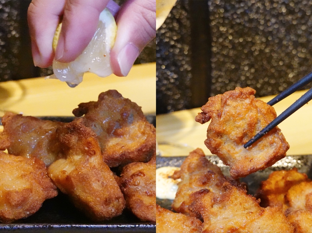 一旁的七味粉美乃滋及檸檬都為這道炸雞增添了酸度,更是達到很好的變換口味解膩效果。
