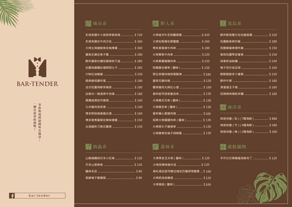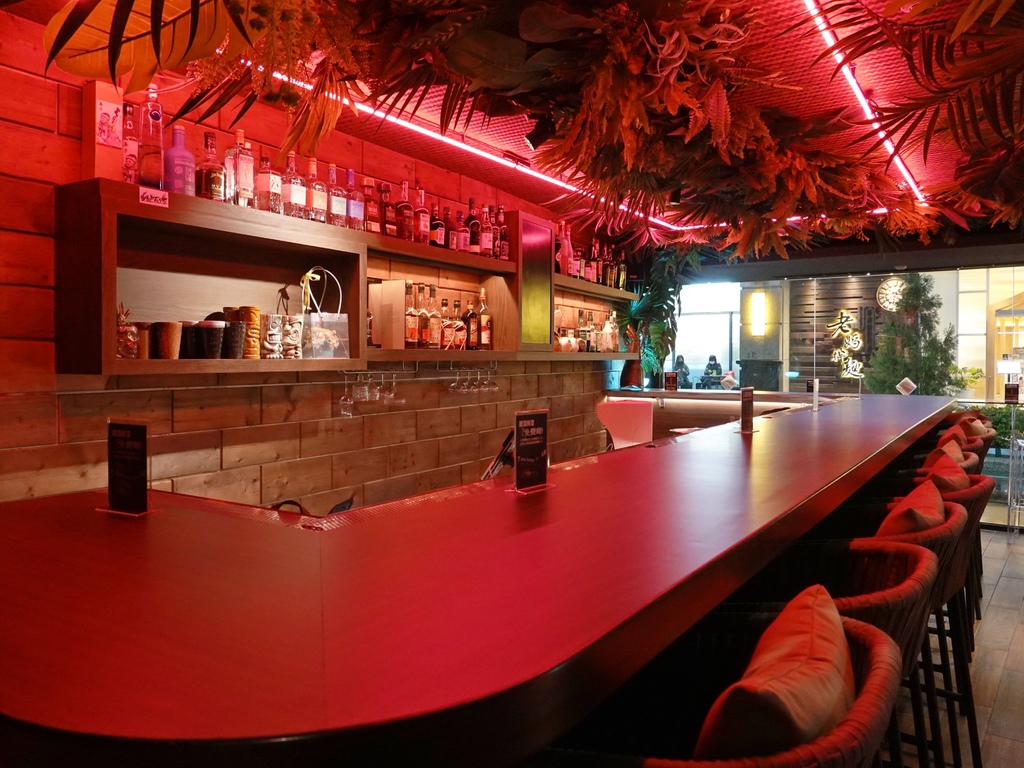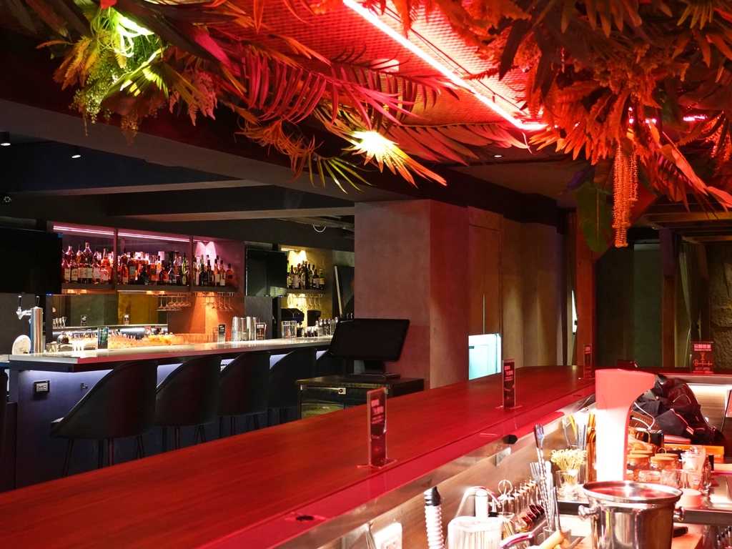 「Bar. Tender 八天」的最大特色之一,就是以雙吧檯為主的設計,將店內切分為二,一邊是簡約時尚的都會風格,另一邊則是熱帶叢林風,雖提供的餐點跟調酒是相同,但氛圍卻是截然不同的。