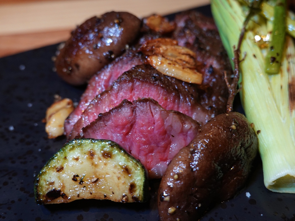 牛小排五分熟的熟度呈現出垂涎欲滴的玫瑰粉色,咀嚼時肉汁迸發,肉味濃郁。