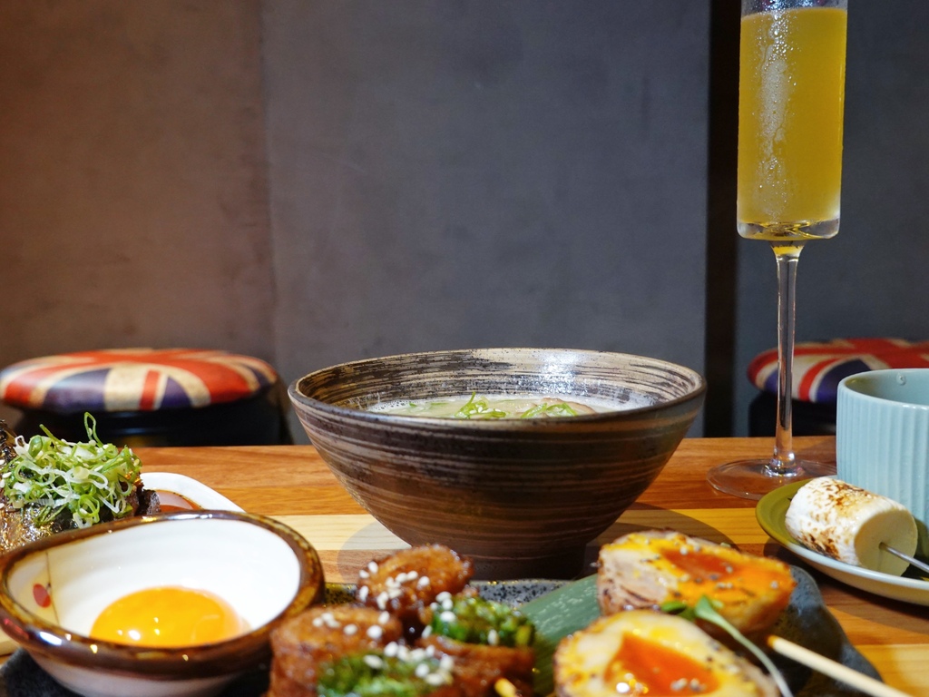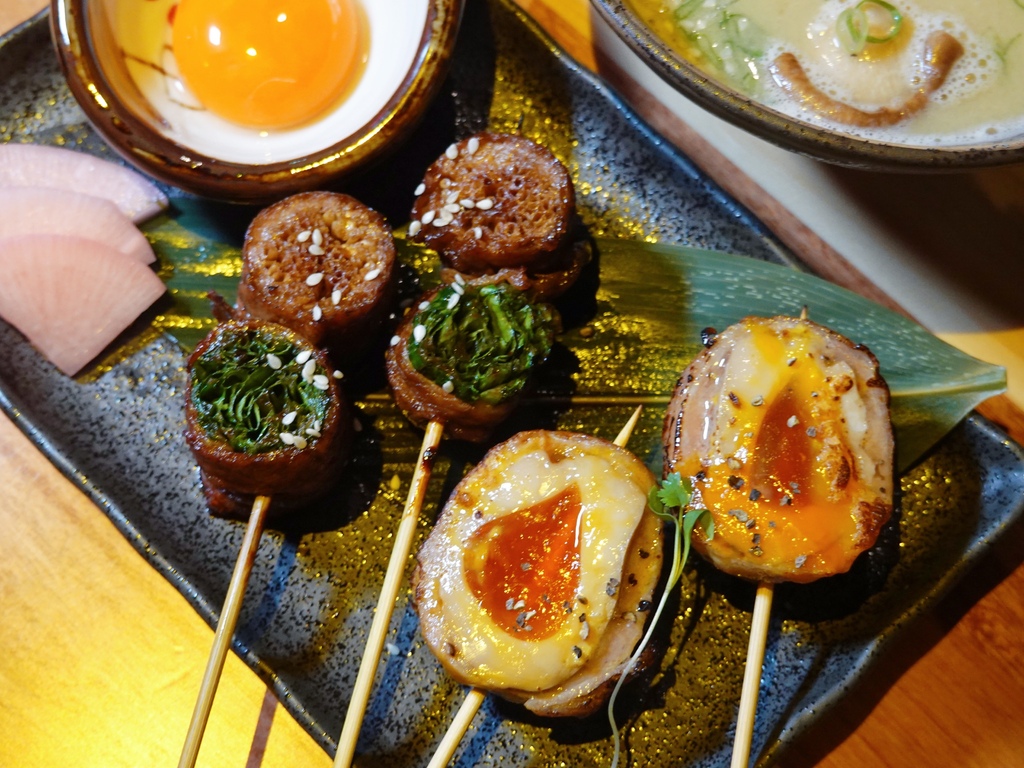由於辣味噌乾拌麵的溏心蛋太深得我心,所以又加點了一份溏心蛋豬肉捲,通常豬肉捲裡包裹蔬菜類居多,包裹溏心蛋就不多見。豬肉熟度要夠,但溏心蛋卻不能過熟失去口感,因此師傅的火侯掌控顯得更為重要。