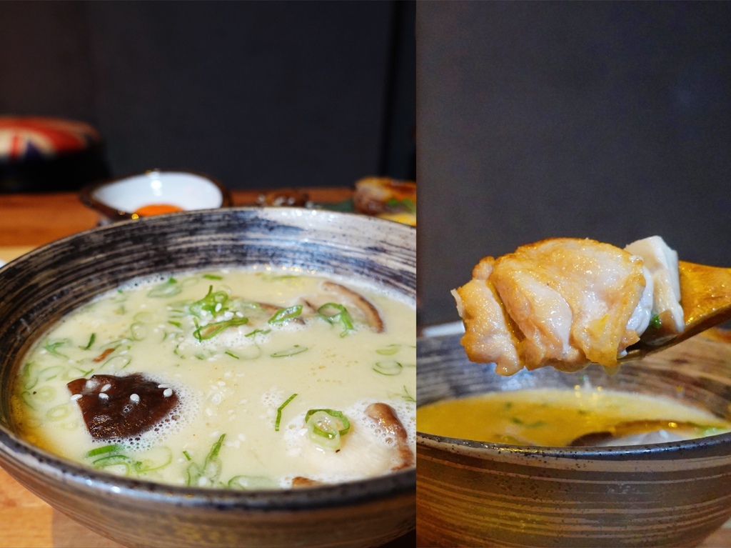 帶有柚子胡椒的白湯,雖口感濃稠但口味卻意外清爽,稍微炙烤過的雞皮帶有些許焦香味,雞腿肉則是多汁柔嫩,十分暖胃。