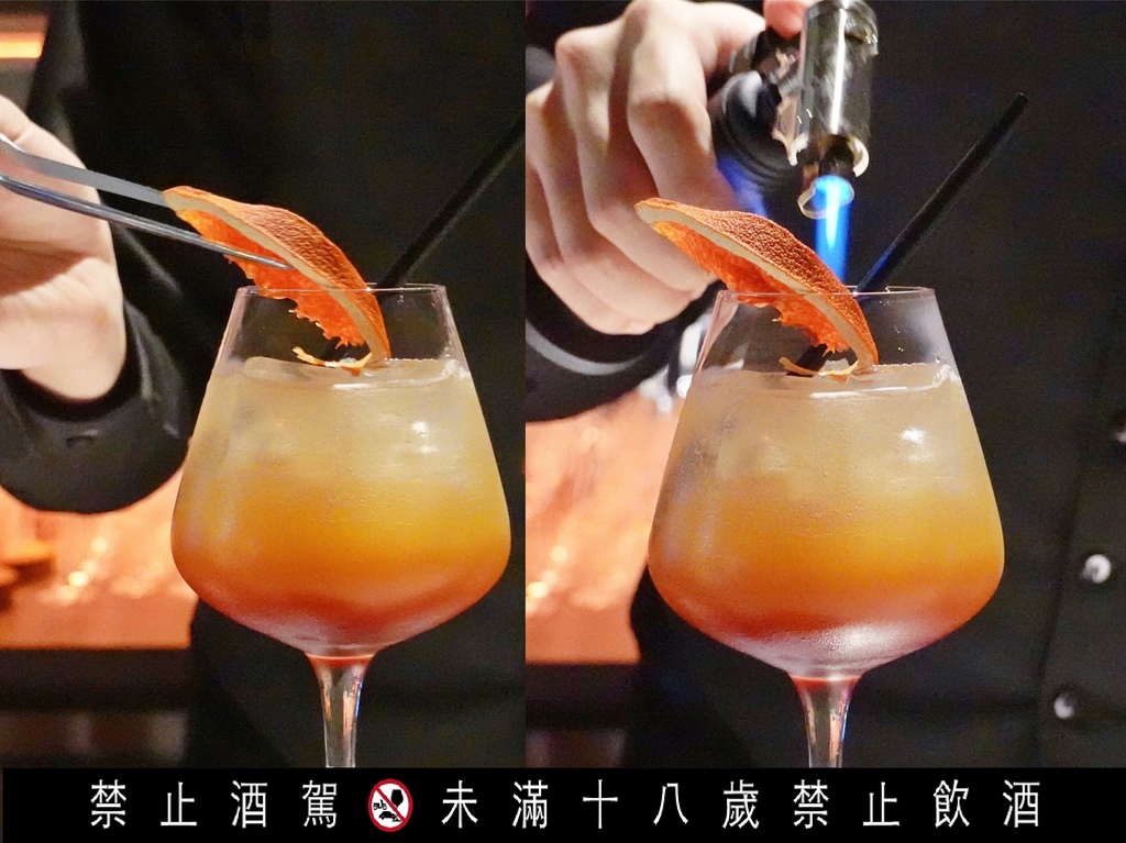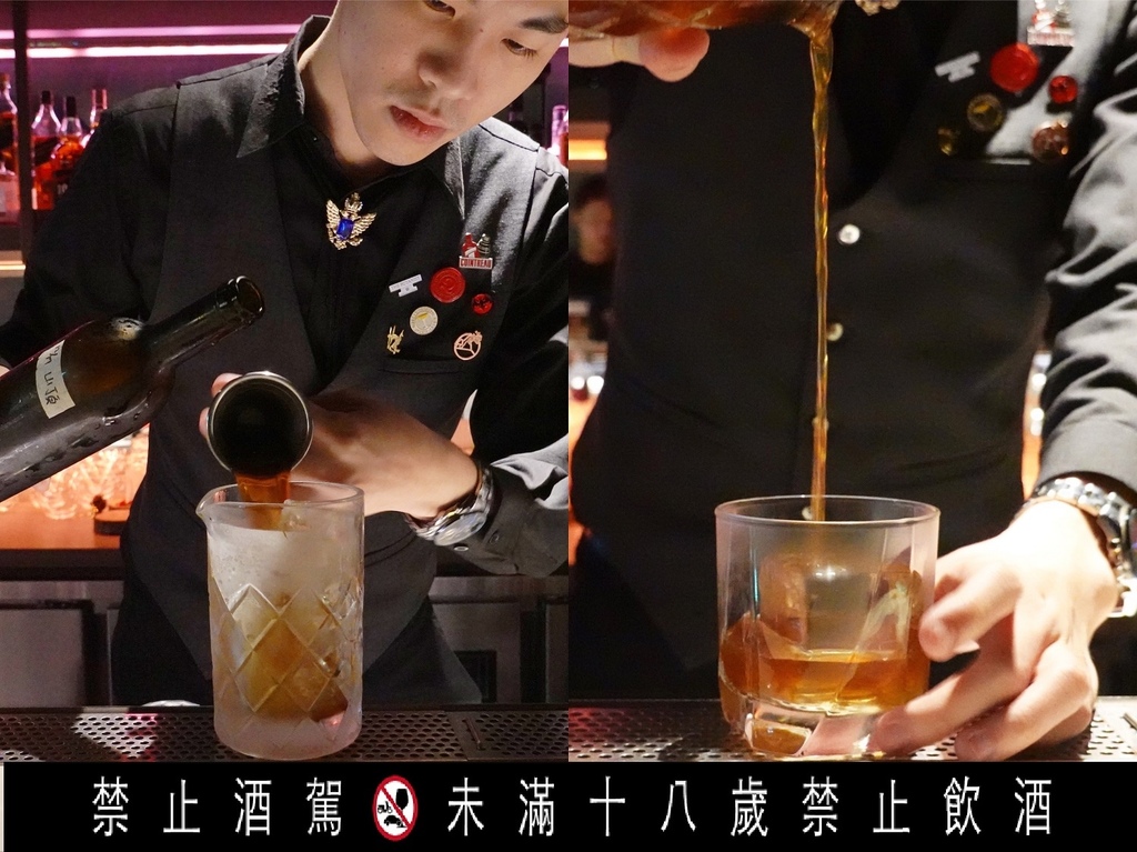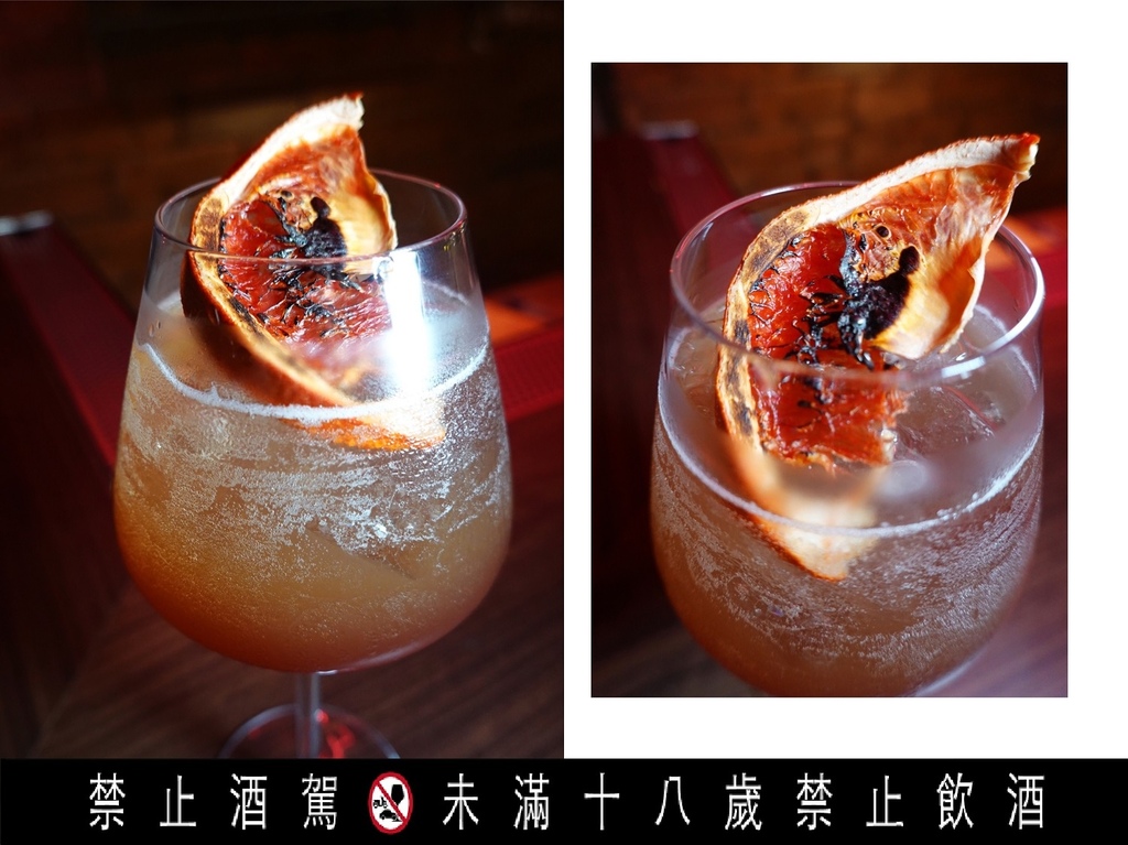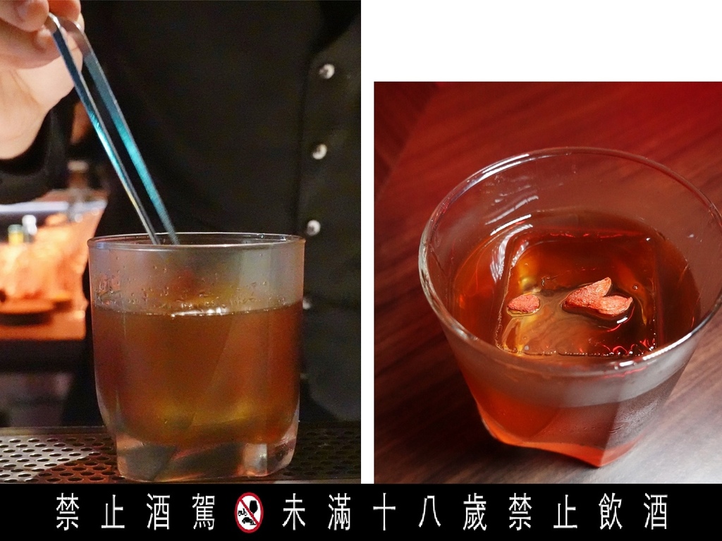 沒有明顯的香氣,喝下是苦中帶辣、辣中帶甜的酒體,枸杞、菊花跟普洱茶主要是香氣的呈現,帶有濃濃東方味。酒感中上,沉穩優雅卻又會突然來拳重擊的調酒。