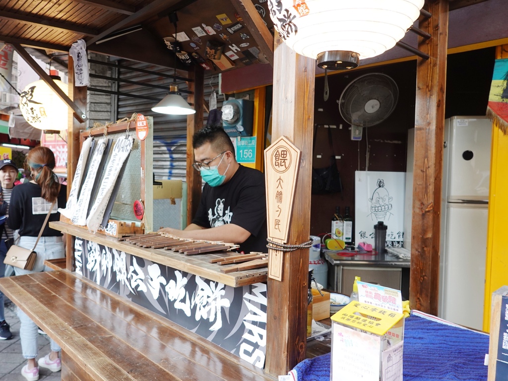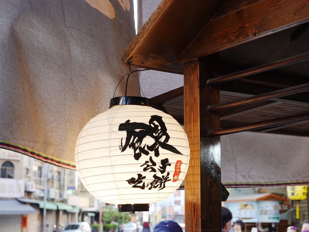 在國華街與尊王路的十字路口,有間木製餐車攤販,上頭還吊掛著燈籠,這裡不是賣拉麵,而是賣壓片餅的「餵公子吃餅」。