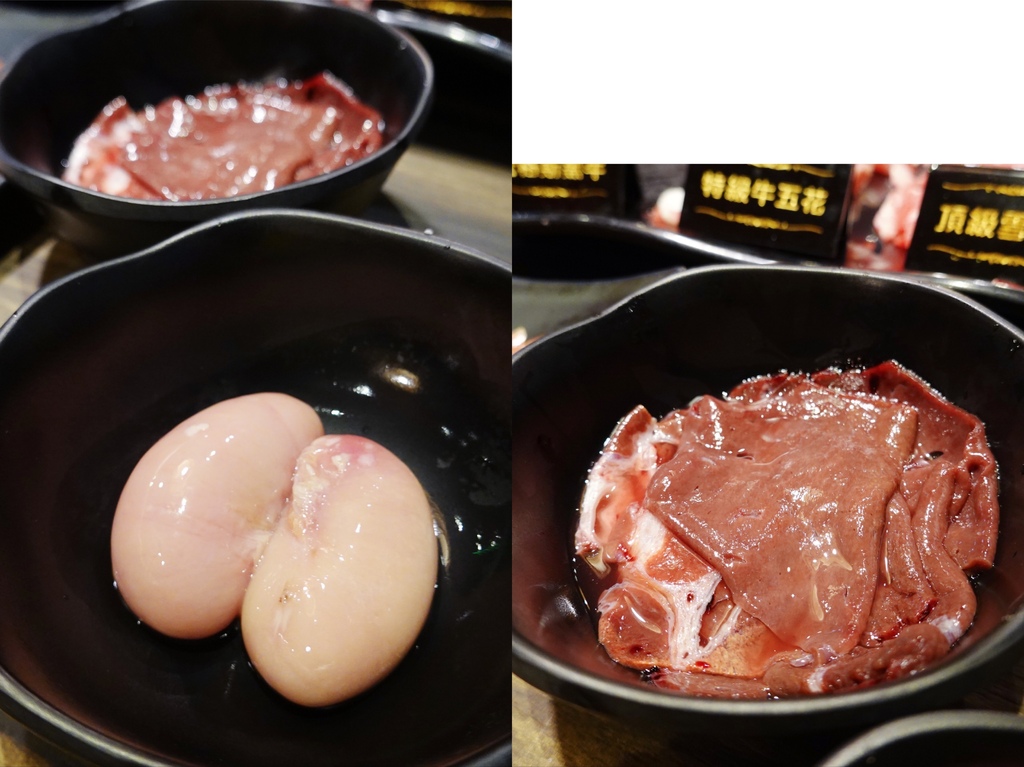 或是可以直接請店家上豬肉拼盤及牛肉拚盤,先都吃一輪再看哪幾項合自己胃口。店家也很貼心的在各式肉品前擺放介紹立牌,如果喜歡要加點才不會霧煞煞。