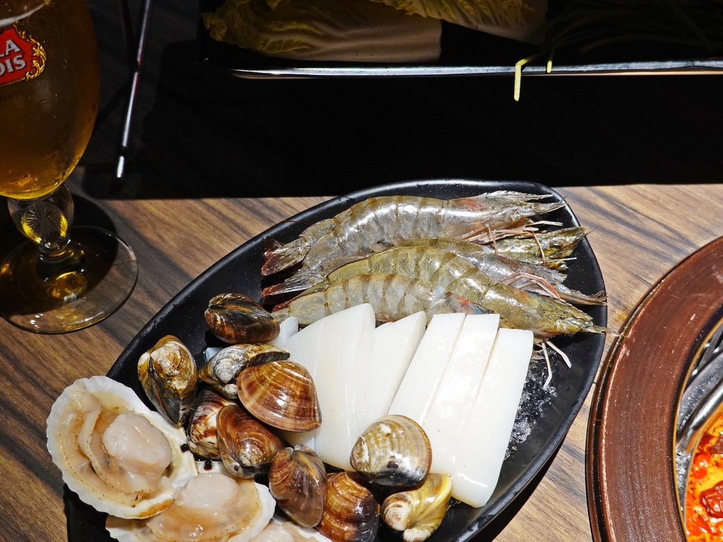 紐西蘭貽貝跟東石鮮蚵當然也不能錯過。如果你是愛吃海鮮的人,「辛巴適麻辣鍋」有多達十五種海鮮可以點選,而且只有天使紅蝦需要升等。