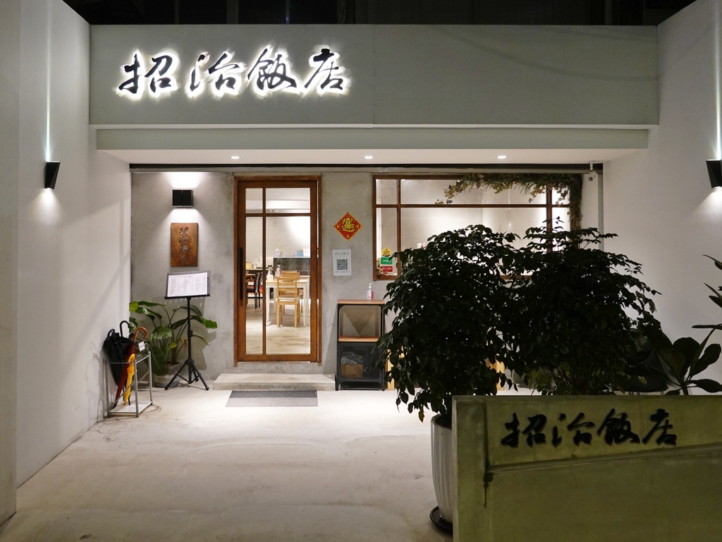 「招治飯店」的門面頗有質感,一席灰白的水泥牆襯托出“招治飯店”四個大字,簡約而大氣。而木門框與燈光的搭配,瞬間讓冰冷的水泥溫暖了起來,牆上貼的紅春聯,更增添了些家的味道。