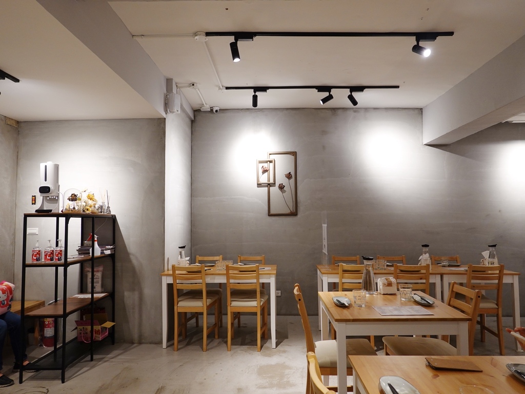 室內佈置沿襲門面的淡雅簡約風格,沒有過多的擺設,整體彩度明度較低。
