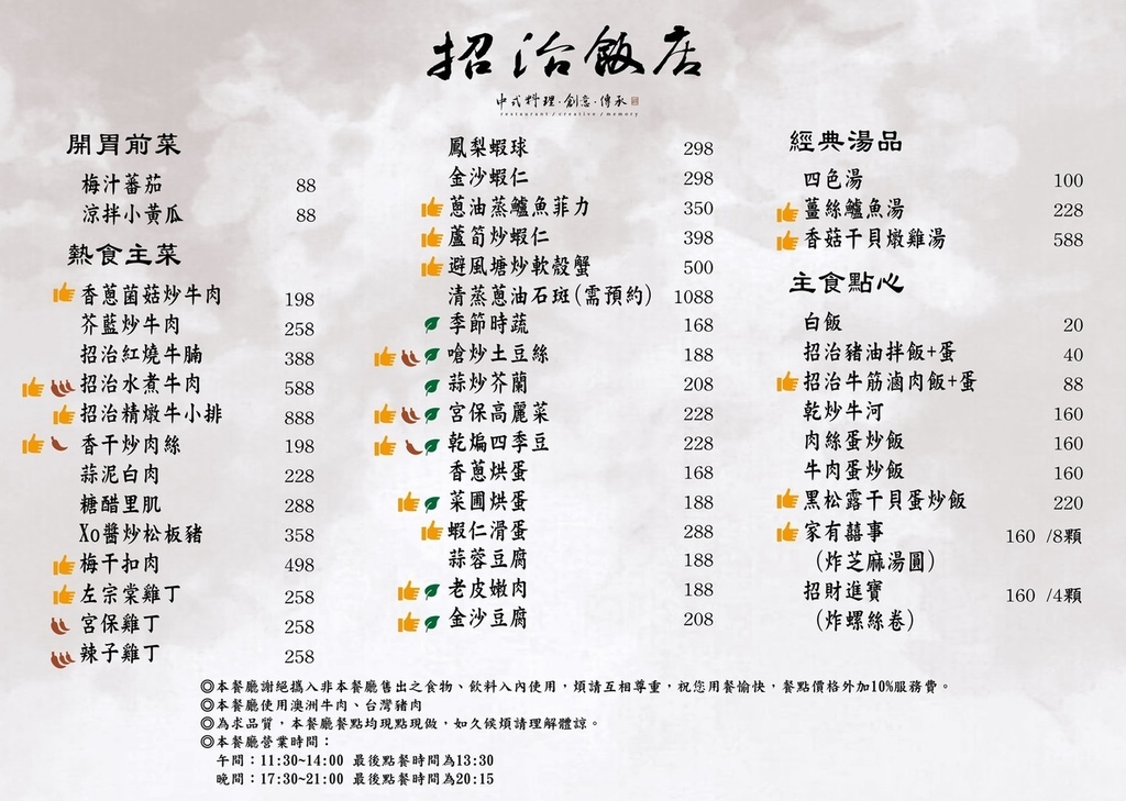 “招治”是主理人外婆的名字,盼望藉著傳承外婆的手路菜,把對外婆的敬愛與思念以料理的方式展現。