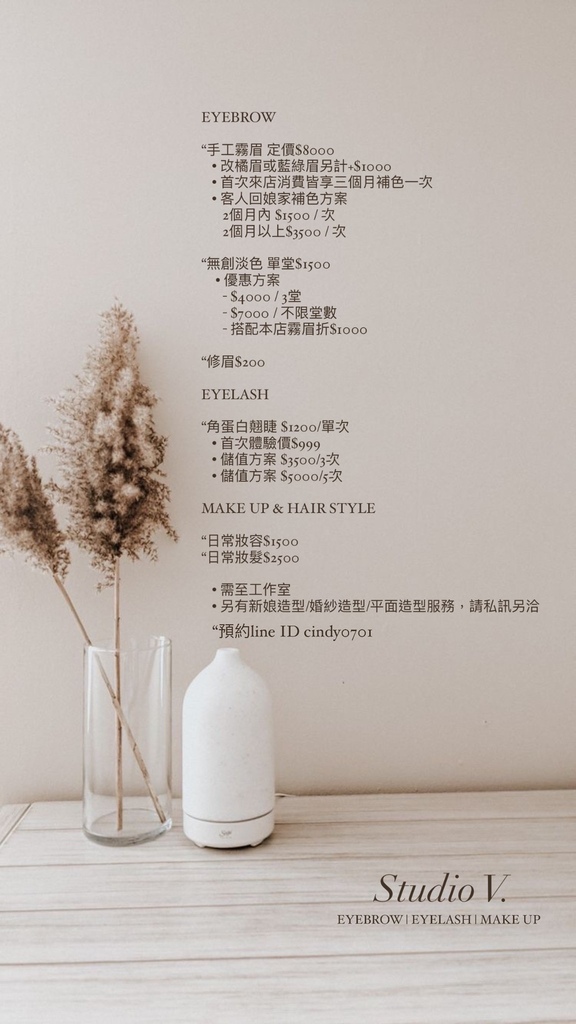 「維眉主義c’est la V eyebrow」不僅僅提供霧眉服務,還有眉毛除色、妝髮造型等,連最近很夯的韓式角蛋白翹睫也有,首次體驗價只要千元不到。