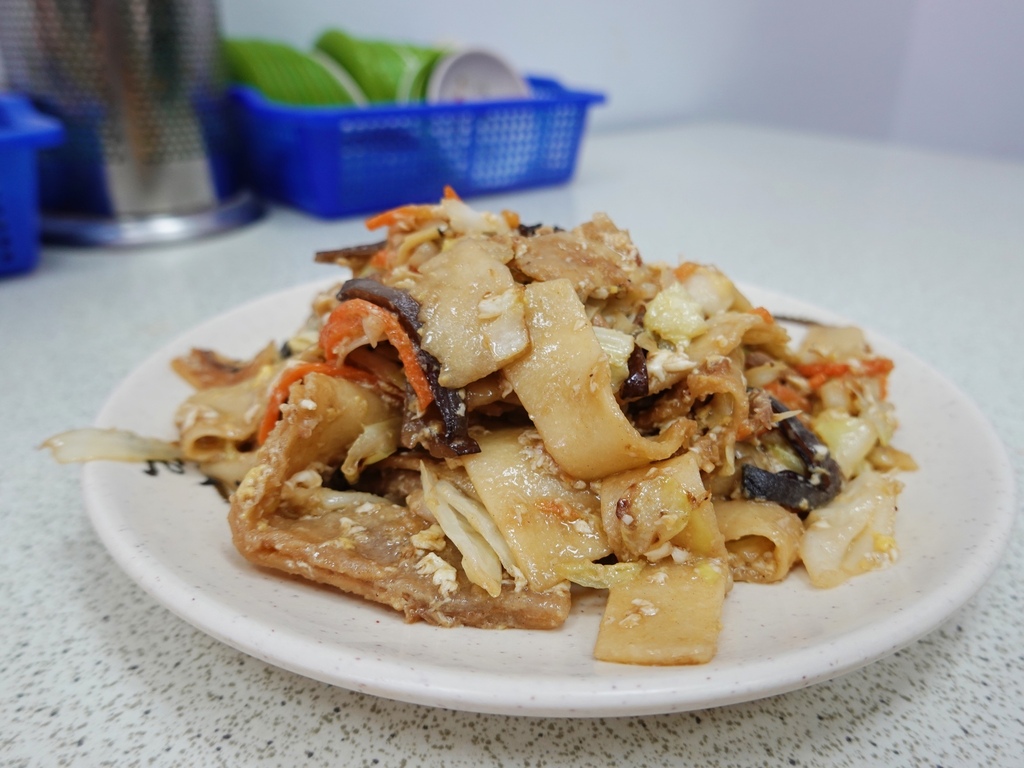 炒料有木耳、蛋、紅蘿蔔、高麗菜及豬肉絲等,味道偏重且整體口感偏濕,最底下是厚厚的一層油,整體吃起來很厚重,十分不耐吃。