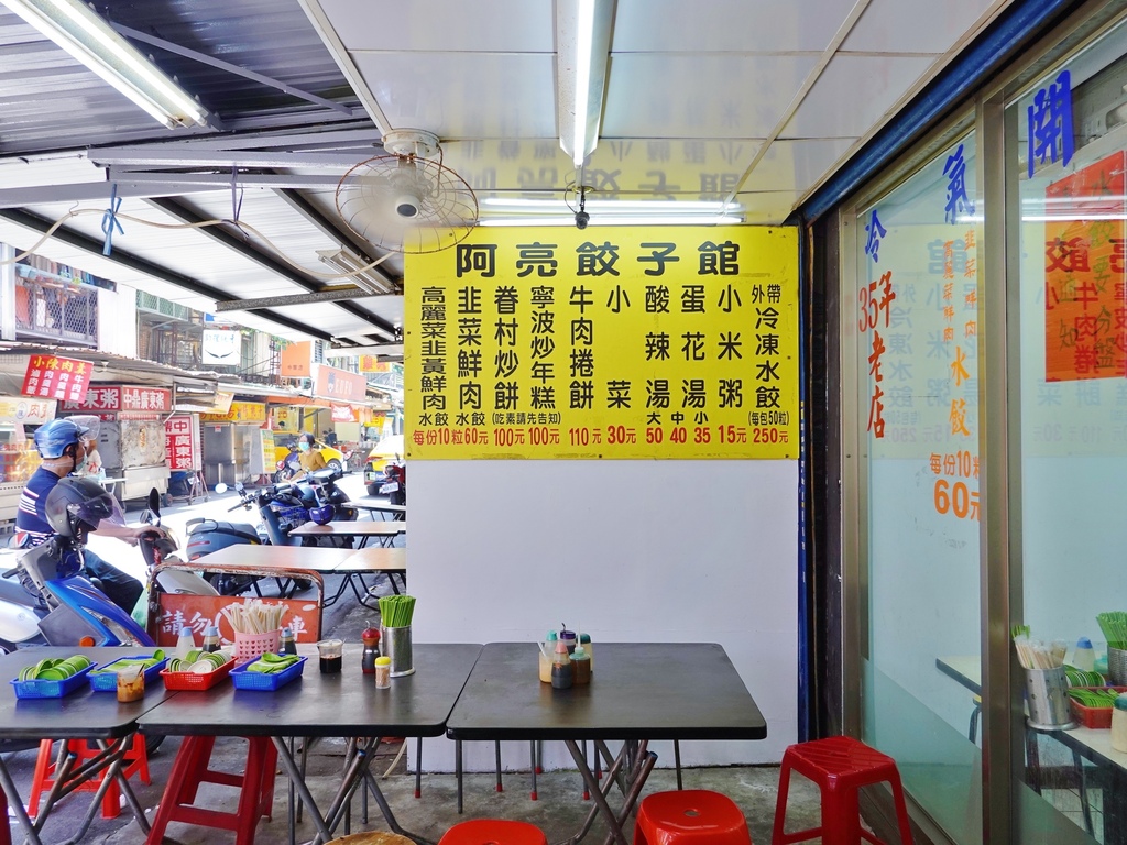 室內室外的座位數算是不少,由於造訪時間不是正餐的尖峰時段,所以「阿亮水餃」僅有約五成的座位坐滿。