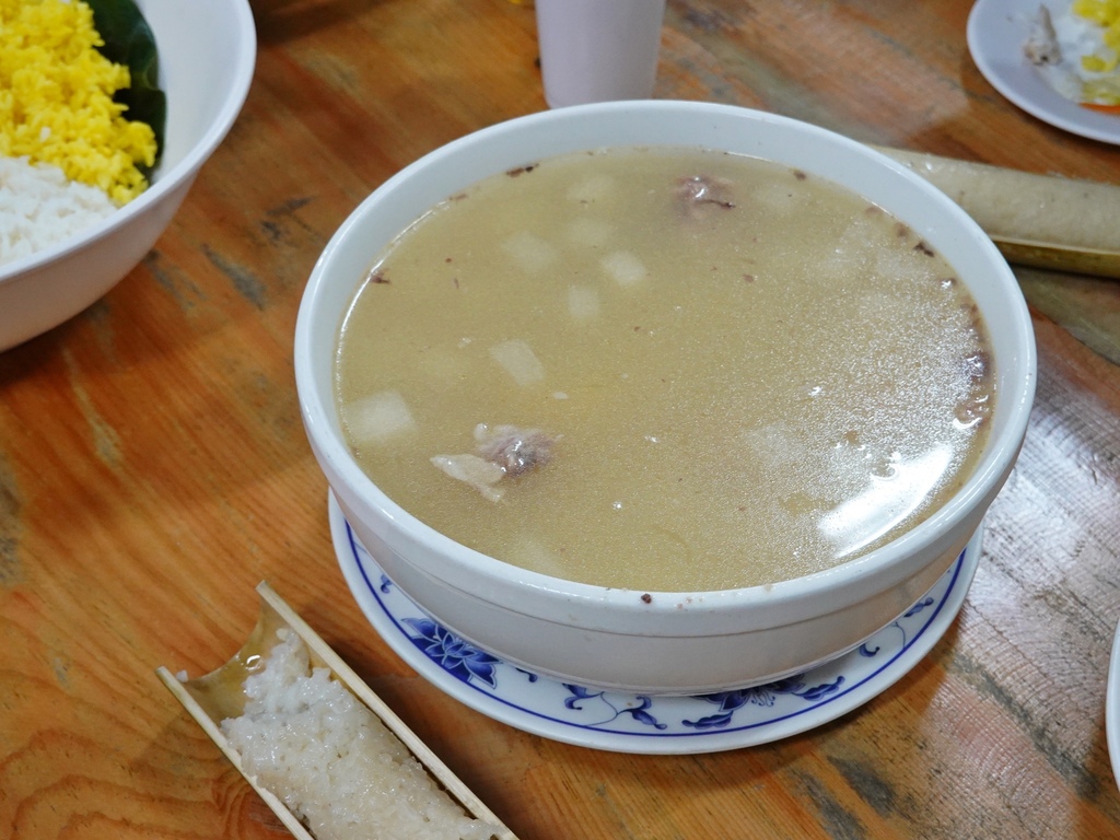 再回到餐點本身,以照片七人份的份量來說其實並不算多,而有特色的餐點我就大致介紹,大多因為竹筒飯及白飯/薑黃飯而吃飽,另外店家餐點可能是事前準備好,上桌時都呈現有點溫熱狀態,這樣$450的價格值不值得,我相信大家心裡有數。