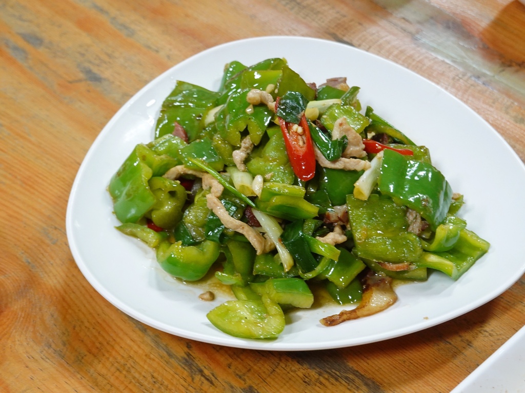 ▲青椒炒臘肉/時菜 $450/人(照片為七人份)