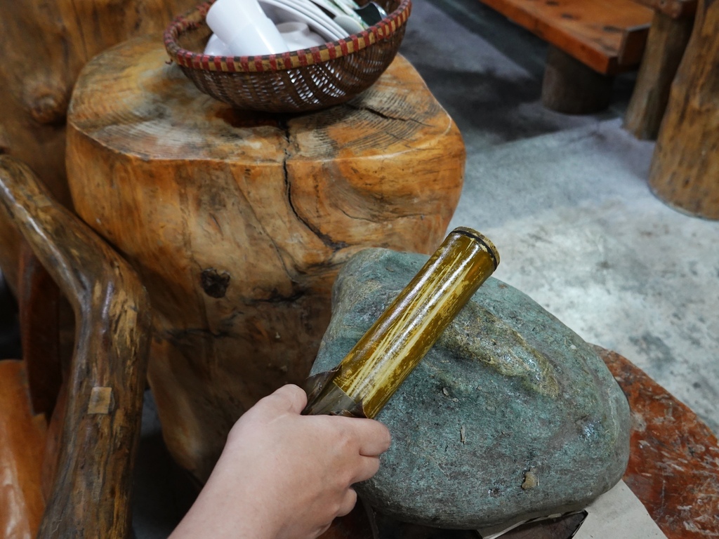 竹筒飯體驗算是「達基力部落屋」的主打之一,需要自行DIY敲開才能嚐到裏頭的米飯。