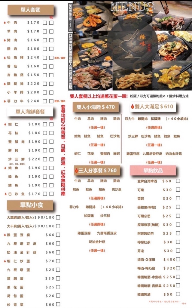 不過「緣味鐵板燒」倒是出乎我意料,不僅用料實在、不多加調味,裝潢更是明亮舒適,打破我對於平價鐵板燒的既定印象,住在蘆洲附近一帶的居民們不妨可以來嚐鮮看看。