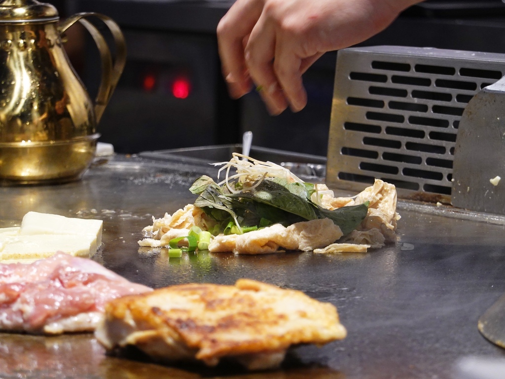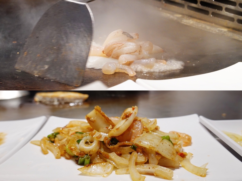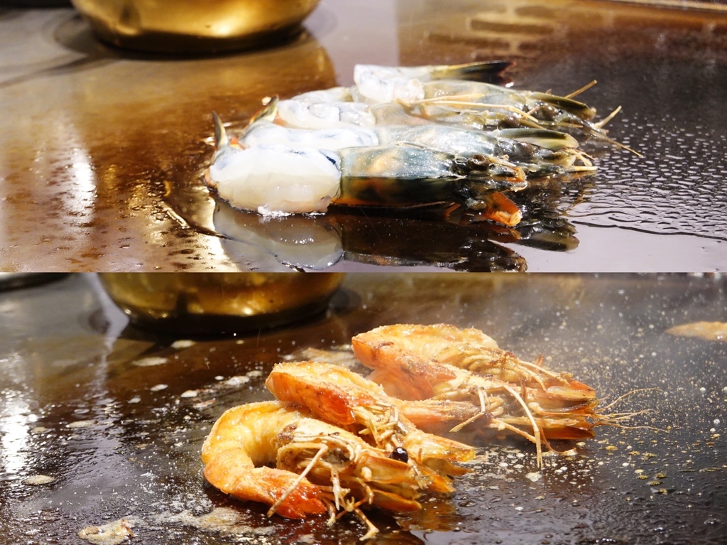 手掌般長度的大草蝦在鐵板上滋滋作響,看著師傅游刃有餘的用兩個鍋鏟施展料理魔法,這也是吃鐵板燒才能擁有的視覺饗宴。