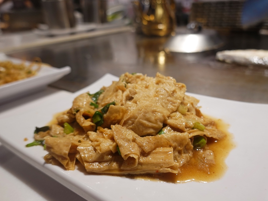 以九層塔、薑絲以及蔥花拌炒的炸豆皮,香氣又更為出眾。