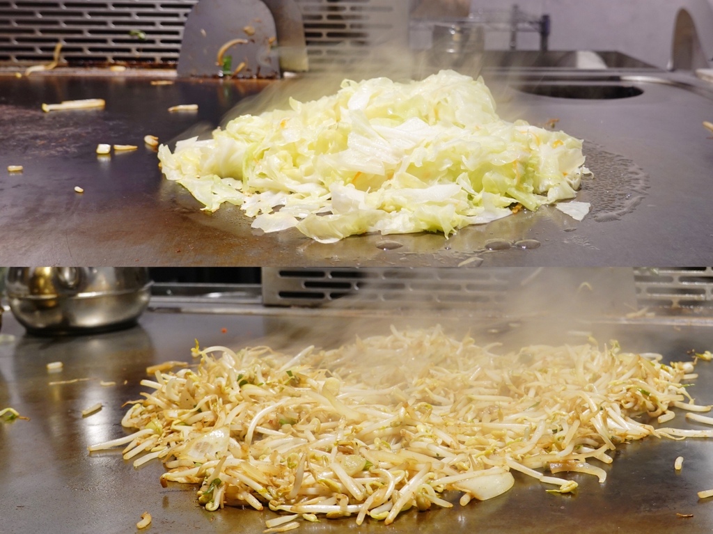 以高溫將青菜炒熟,再加水悶軟,豆芽則是額外加入醬汁增添風味。我平常最抗拒高麗菜梗一堆難以下嚥,或是豆芽菜黑胡椒毫不手軟,這在「緣味鐵板燒」完全沒發生。