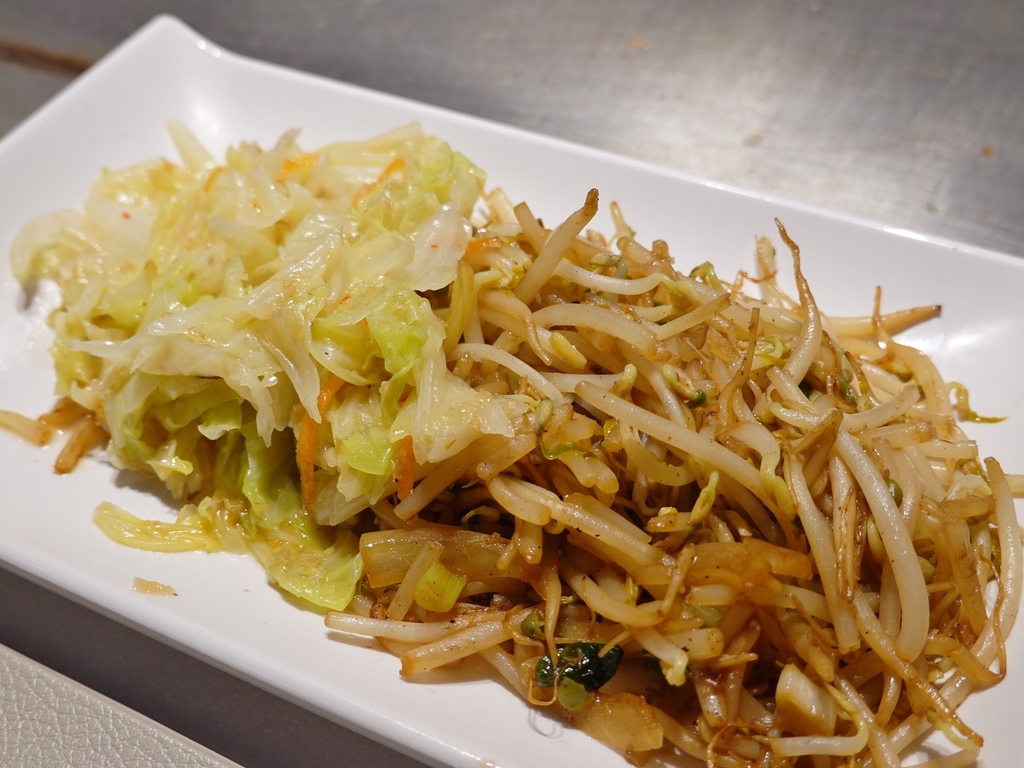 切的較小塊的高麗菜大多為葉菜部分,軟且好入口;豆芽帶醬香卻不死鹹,沒有過於恣意的細鬚影響口感,取而代之的仍是豆芽的爽脆,很對我胃口。