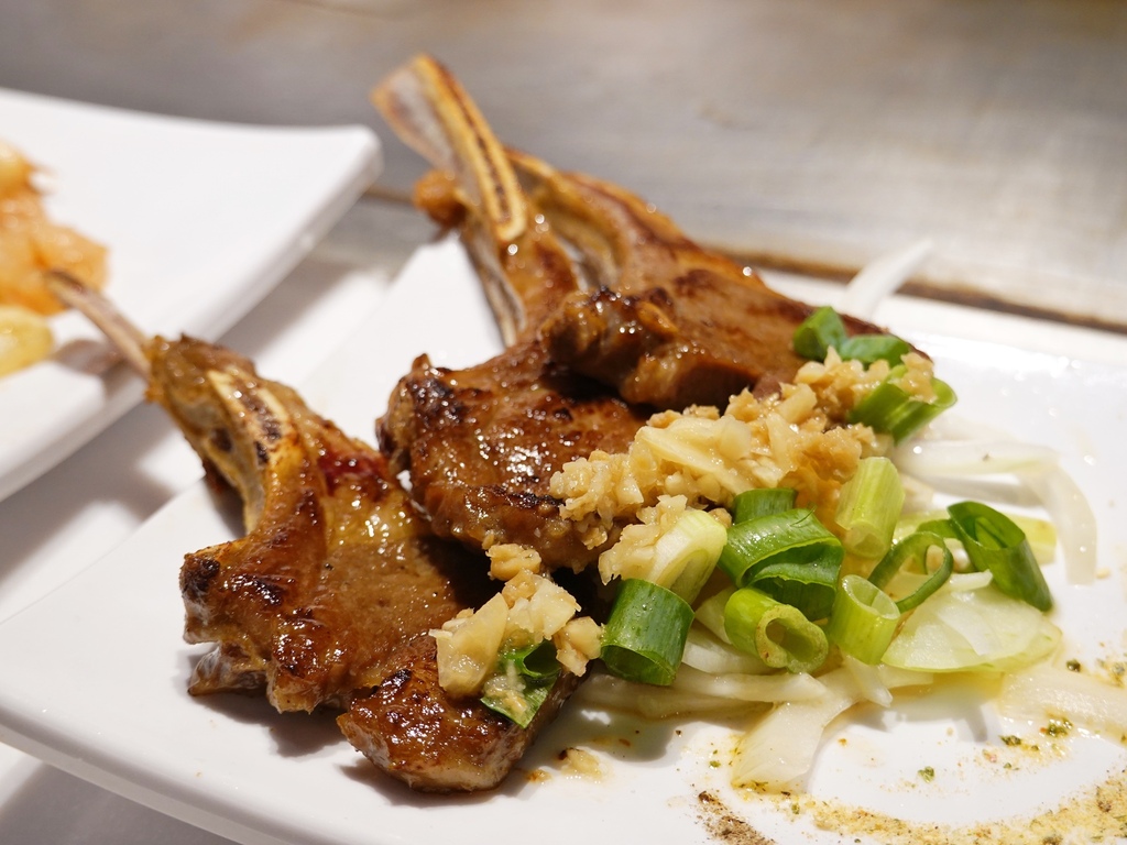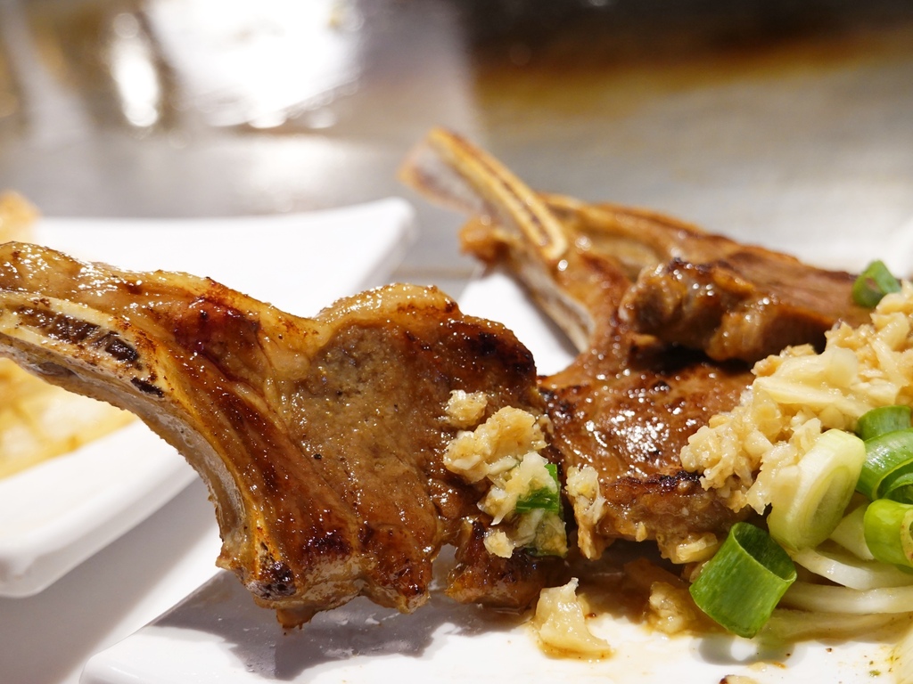 一份共有三隻的小羊排,僅以油煎方式呈現,一旁同樣佐有蒜泥、蔥花、洋蔥以及胡椒。