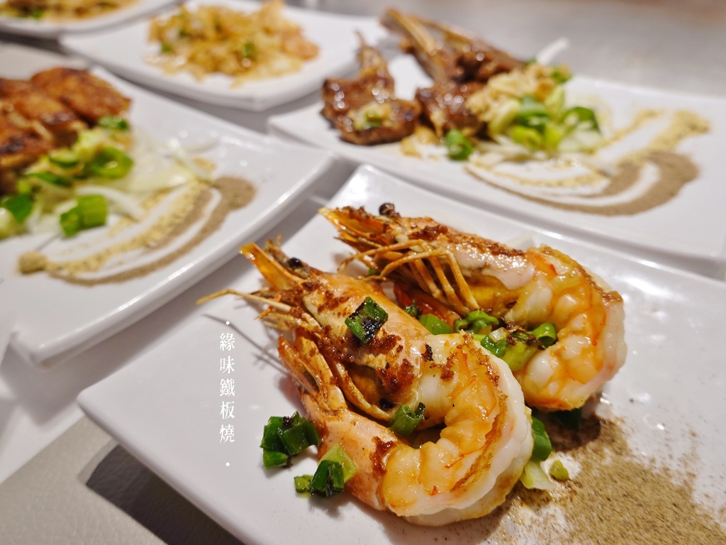 造訪當天「緣味鐵板燒」剛好在做活動,套餐加價七十元就能吃到兩隻開背大草蝦。