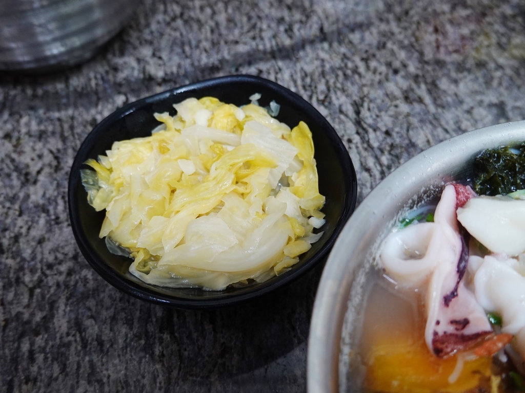 泡菜店內有做販售,一碟三十元;泡椒則擺在桌上可以自行取用,不要小看它,辣度十分驚人,這辣度讓嗜辣的朋友愛不釋手,還帶了一瓶回家,建議想嘗試的可以先在米粉中加點泡椒油試試看,如果能接受再小口小口的吃。