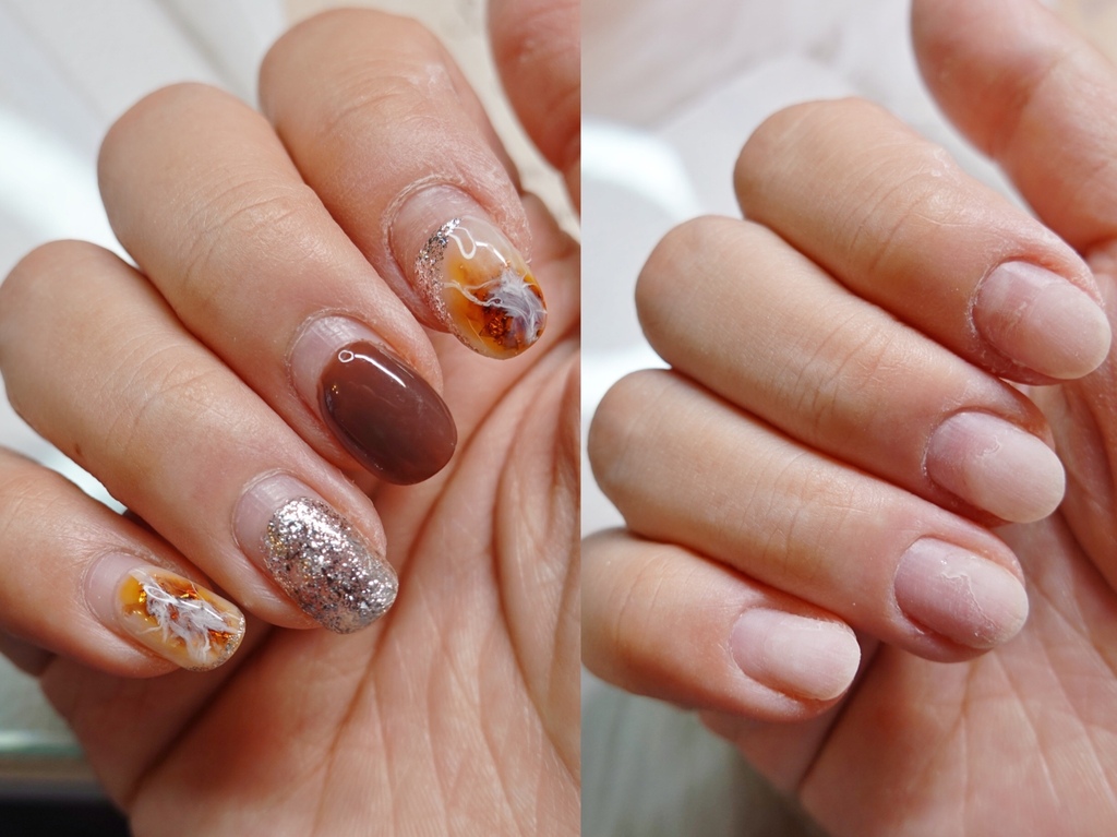 距離上次參加婚禮已經一個月過去,也代表著手上光療也撐了一個月多,明顯有新指甲長出的痕跡,所以小陳老師先幫我卸甲,再幫指甲穿上夏天的新衣。