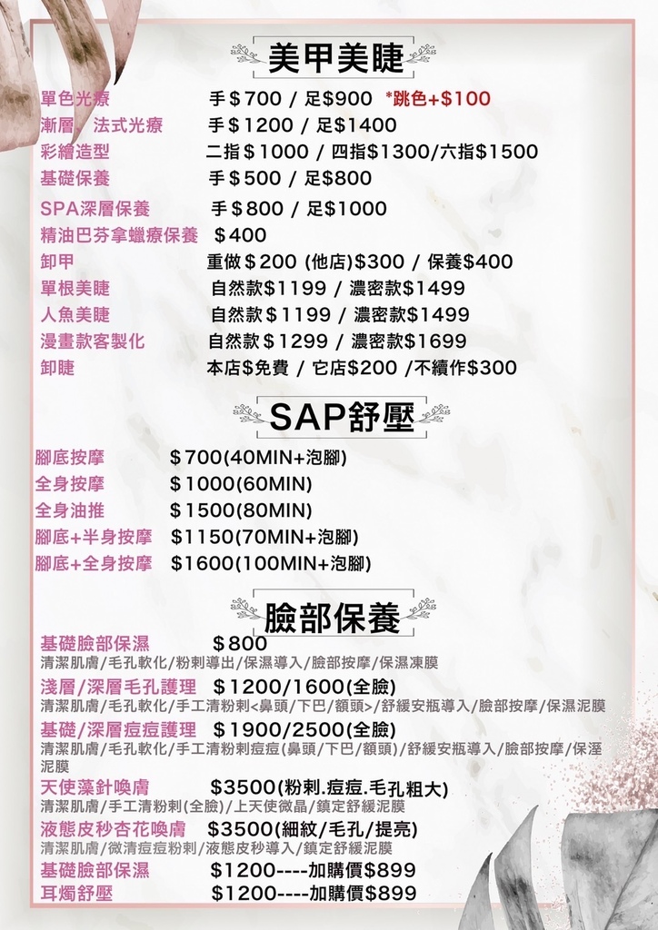 除了美甲之外,「SEE FUN喜歡」還有提供美睫、臉部保養、身體按摩、除毛、採耳等服務,可以在這享受一整天一條龍的服務。