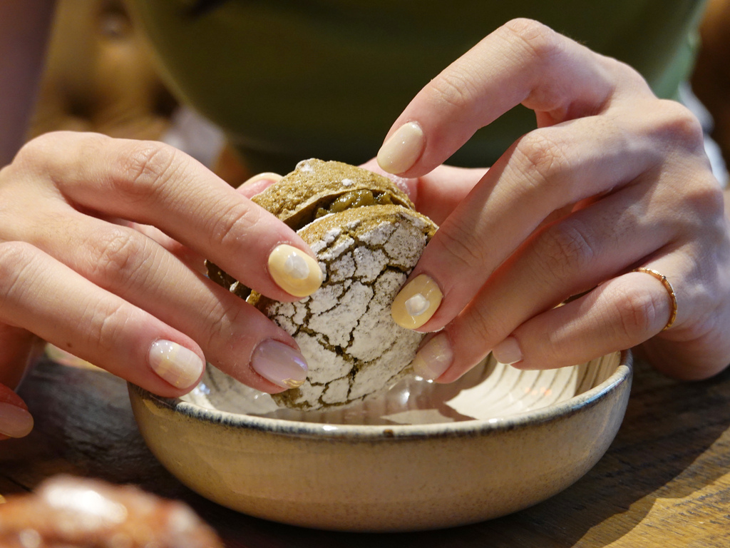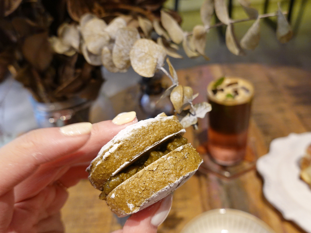 達克瓦茲是使用杏仁粉、榛果粉及大量蛋白製成的蛋白餅,由於全出於老闆的巧手,所以點餐之後才會填上餡料,以保有最完美的口感。