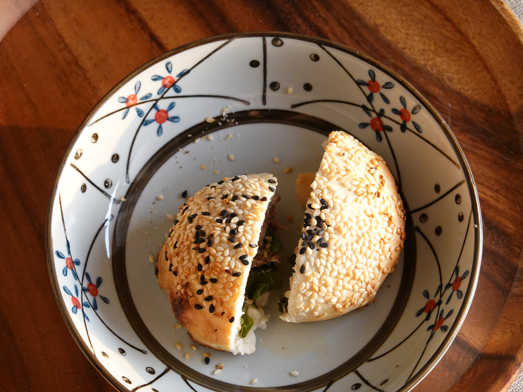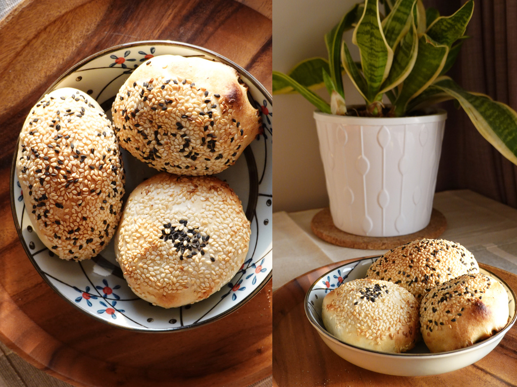 不同口味的烤餅,是以形狀以及芝麻做區分,這次買了二鹹一甜作為晚餐裹腹。